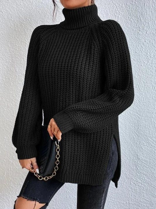 Womens Chic Black Knit Turtleneck Sweater for Cozy Style