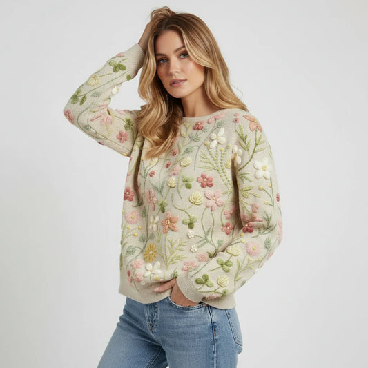 Womens Chic Floral Embroidery Knit Sweater for Casual Style
