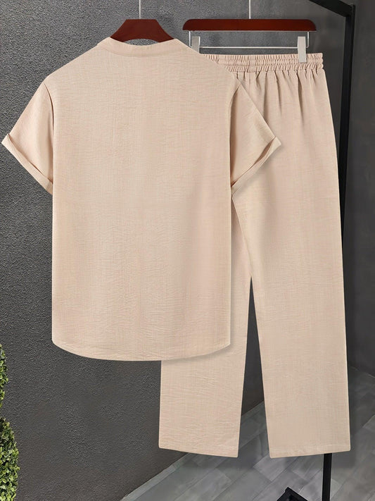 Men’s Two-Piece Linen Set for Casual Comfort
