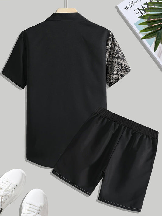 Ethnic Print Lapel Shirt and Shorts Summer Set for Men