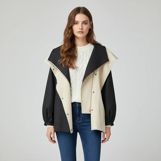 Womens Stylish Two-Tone Hooded Jacket