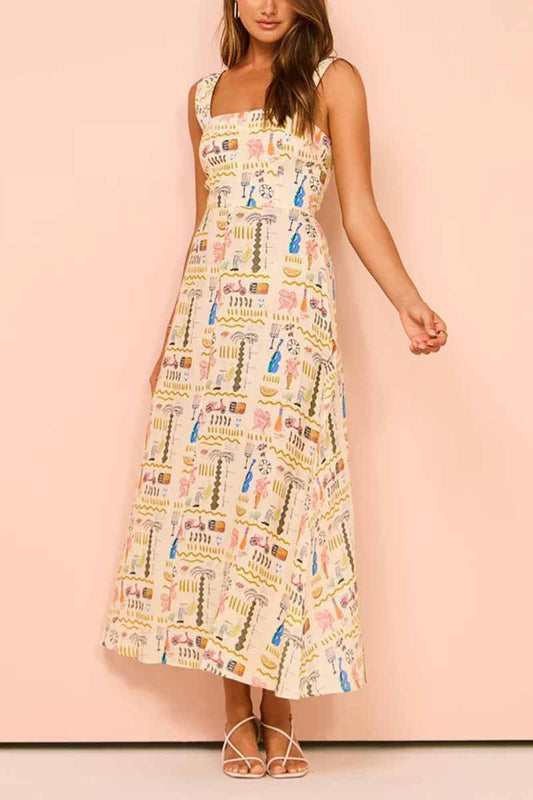 Molly Timeless Square Neck Maxi Dress with All-Over Print