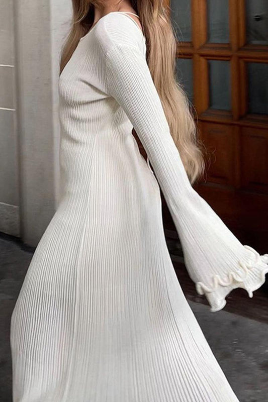Lola Elegant Solid Rib-Knit Maxi Dress with Sleek Silhouette