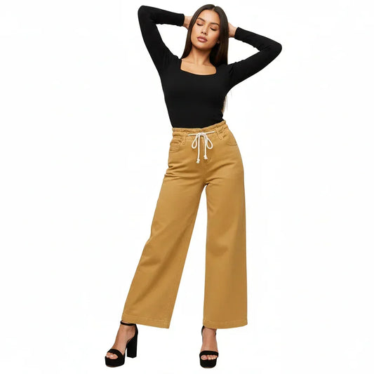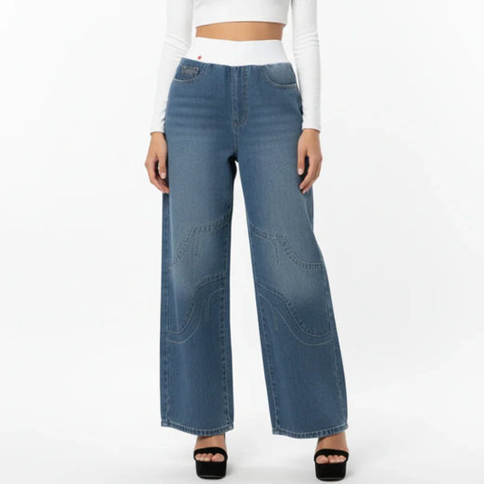 Baggy Wide Leg Jeans – Low Rise Baggy Jeans with Ribbed Waistband Trouser