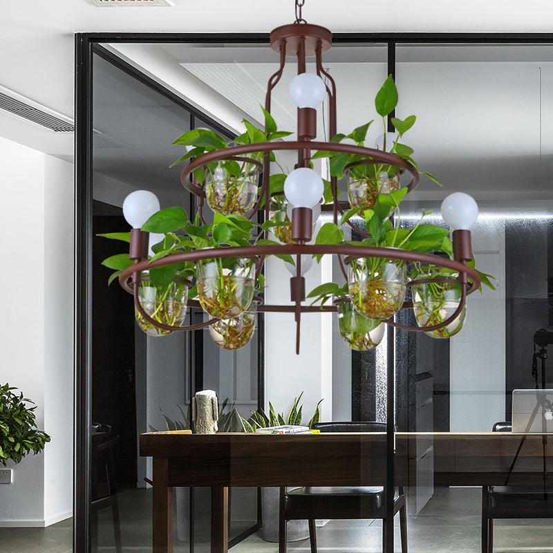 1/2-Tier Metal Chandelier Light Industrial 4/7/10 Bulbs Coffee | Rebooters