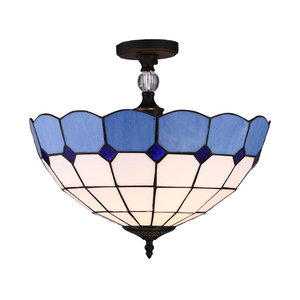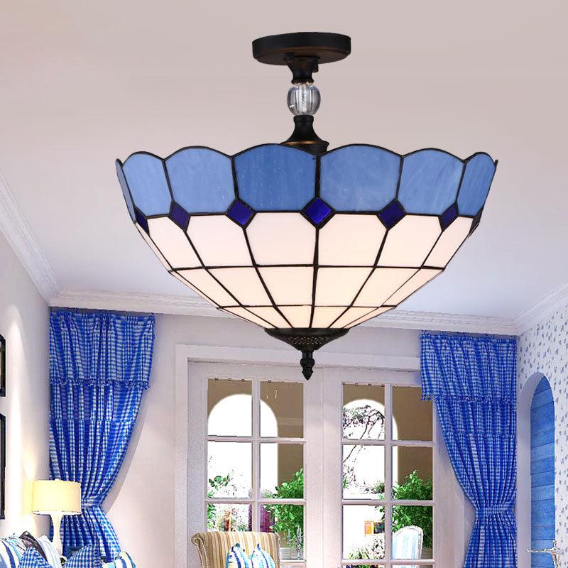12 Inch 16 Inch W Bowl Semi Flushmount Victorian Tiffany Stained Glass Light in Blue Green Yellow | Rebooters