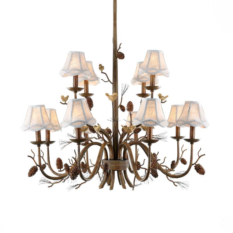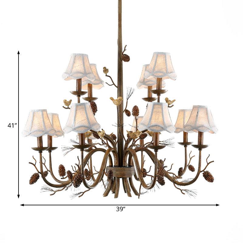 12 Lights Scalloped Chandelier Rustic Brown Metal Pendant Light | Rebooters