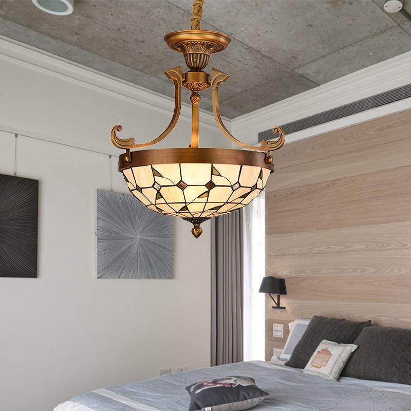 16"/18" W Flower/Leaf Chandelier Light Fixture 3 Lights Stained Glass Victorian Hanging Lamp Kit | Rebooters