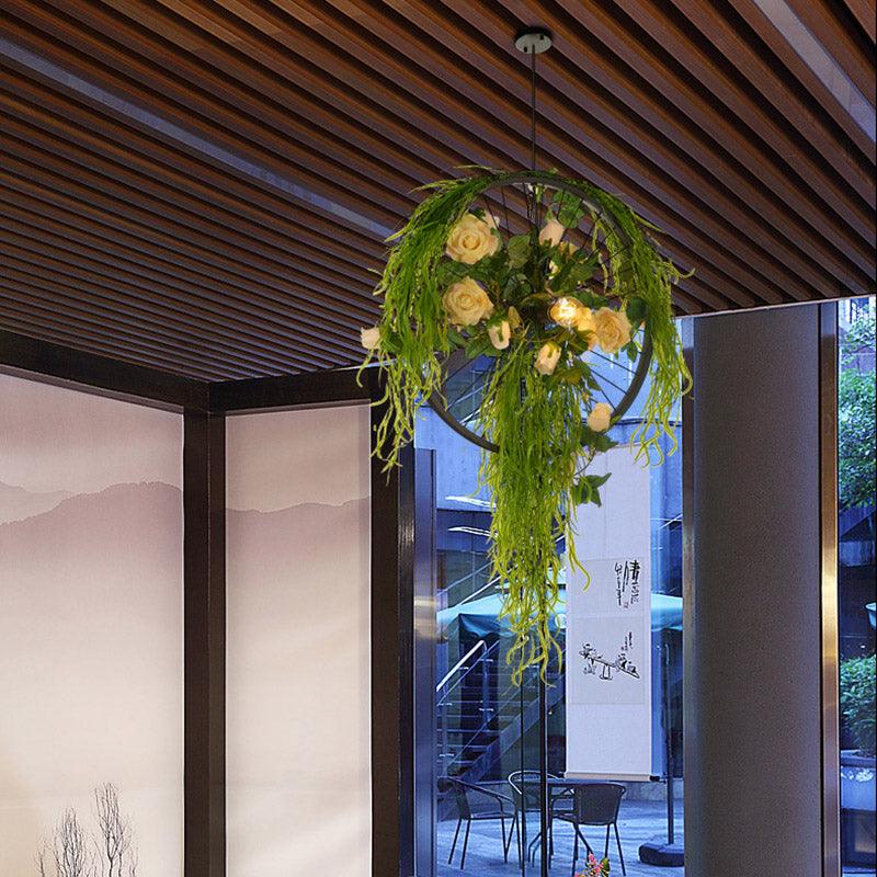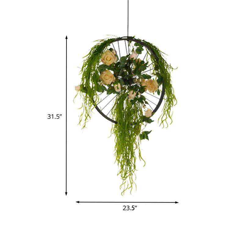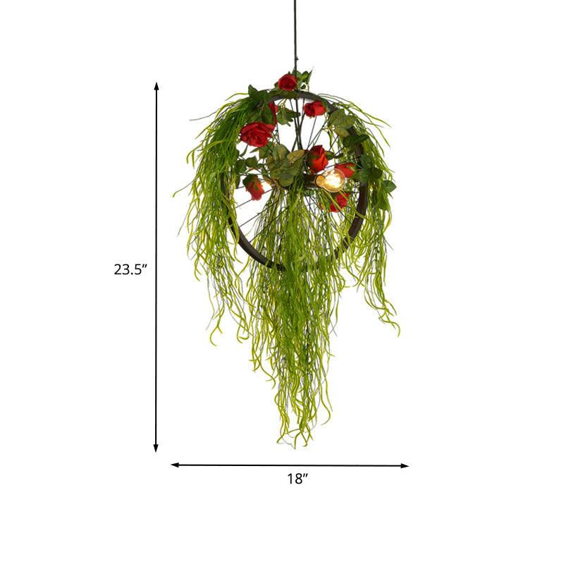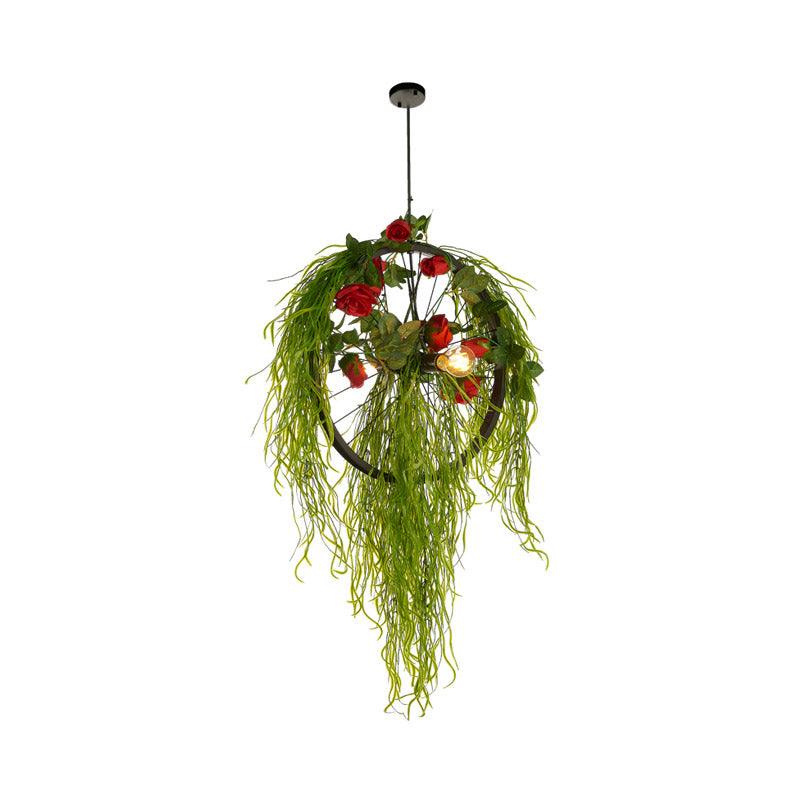 2-Bulb Wheel Ceiling Chandelier Farmhouse Black Iron Light | Rebooters