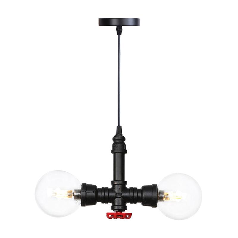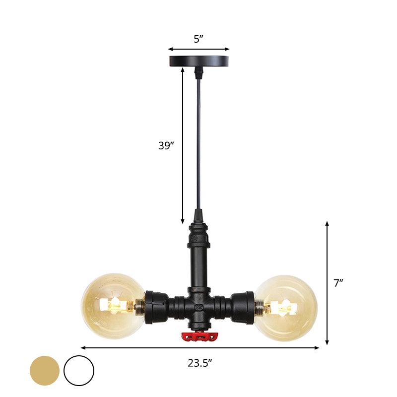 2 Bulbs Chandelier Pendant Lighting Vintage Sphere Amber Clear Glass Hanging Lamp Fixture in Black | Rebooters
