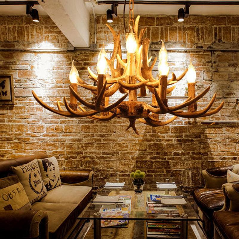 2-Tier Living Room Hanging Lamp Traditional Resin 9 Bulbs Chandelier | Rebooters