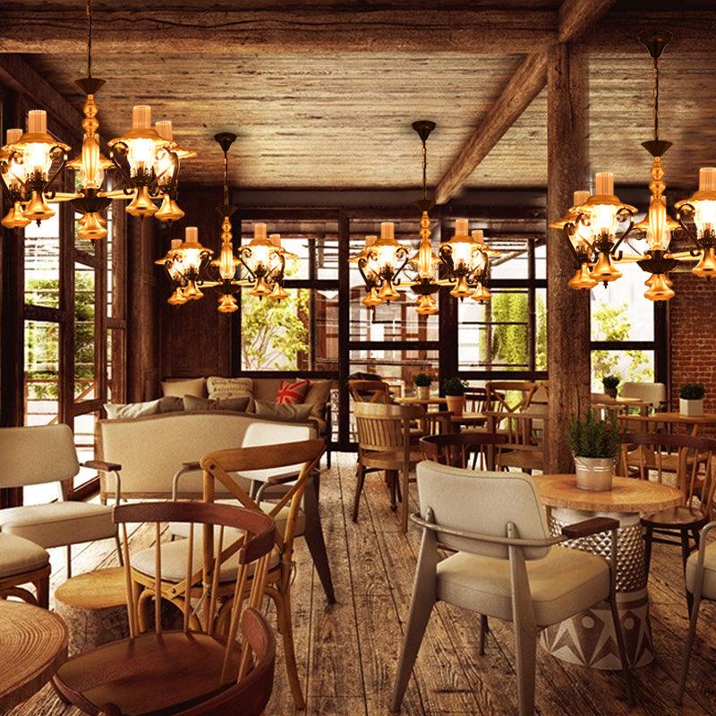 3/5 Lights Lantern Chandelier Lighting Height Adjustable Metal and Glass Vintage Pendant Lamp in Gold | Rebooters