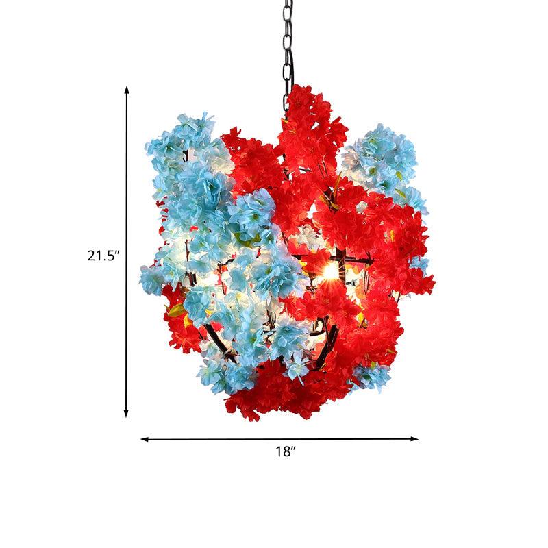 3 Bulbs Floral Spherical Chandelier Lighting Fixture Industrial Red and Blue Metallic Lamp | Rebooters
