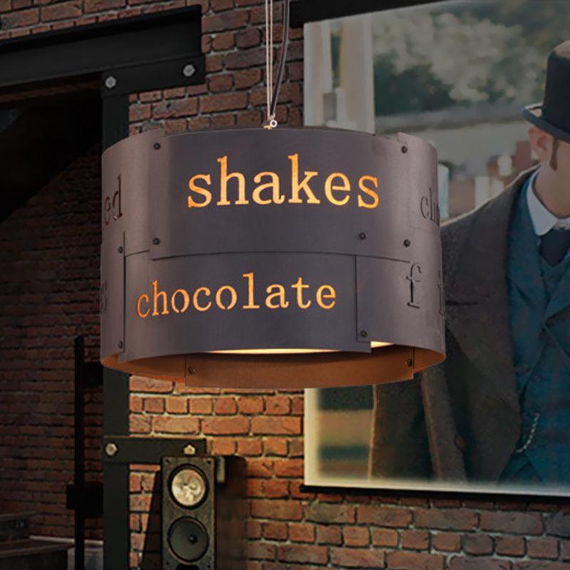 3-Head Drum Chandelier Lighting Antiqued Black Iron Fixture | Rebooters