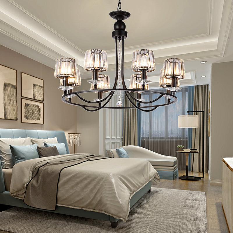 4/6/8 Lights Circle Hanging Chandelier Crystal Light Black | Rebooters