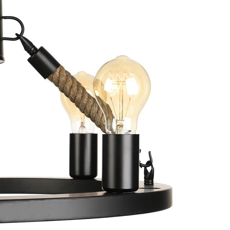 4 Heads Wrought Iron Chandelier Light Industrial Black Ring | Rebooters