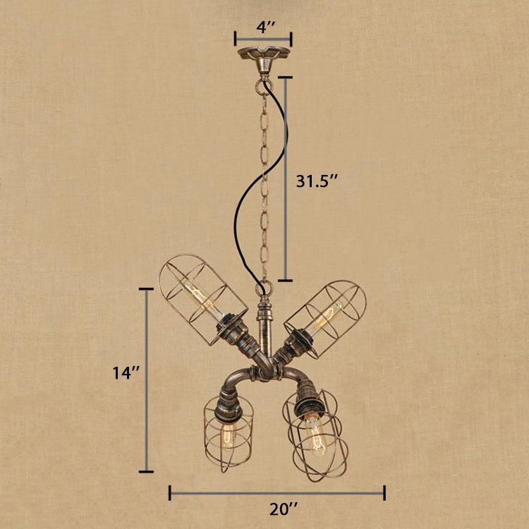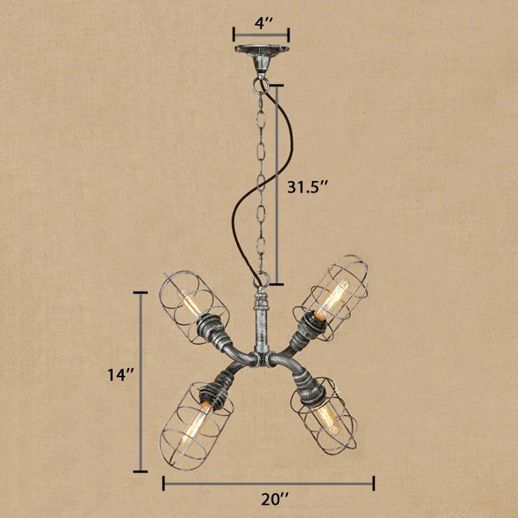 4-Light Caged Hanging Light Coastal Style Bronze Antique Silver Wrought Iron Chandelier Pendant Light with Pipe | Rebooters