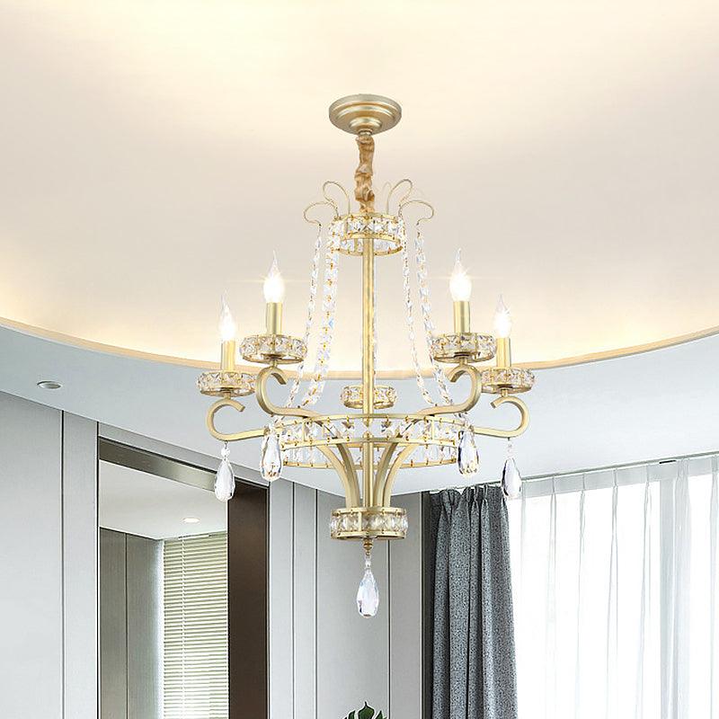 5/8 Bulbs Candle Chandelier Lamp Rustic Gold Crystal Pendant Light | Rebooters