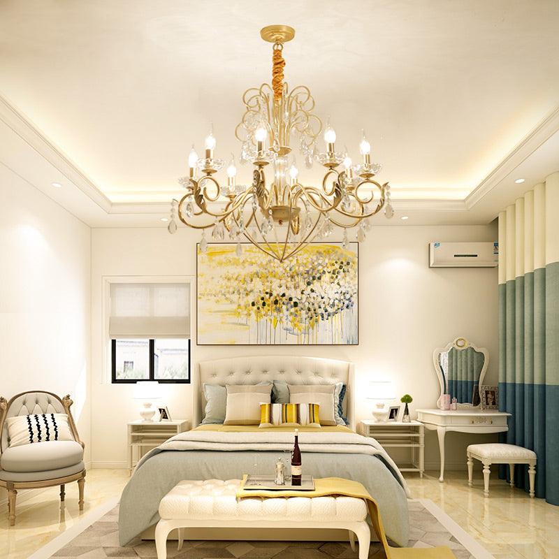 5/8 Lights Candle Hanging Lamp Vintage Style Metal and Crystal Height Adjustable Chandelier Pendant Light in Gold | Rebooters