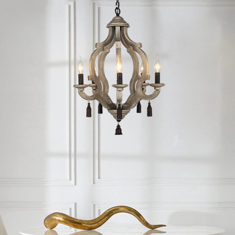 5 Lights Wood Ceiling Light Traditional Dark Wood Lantern Chandelier | Rebooters