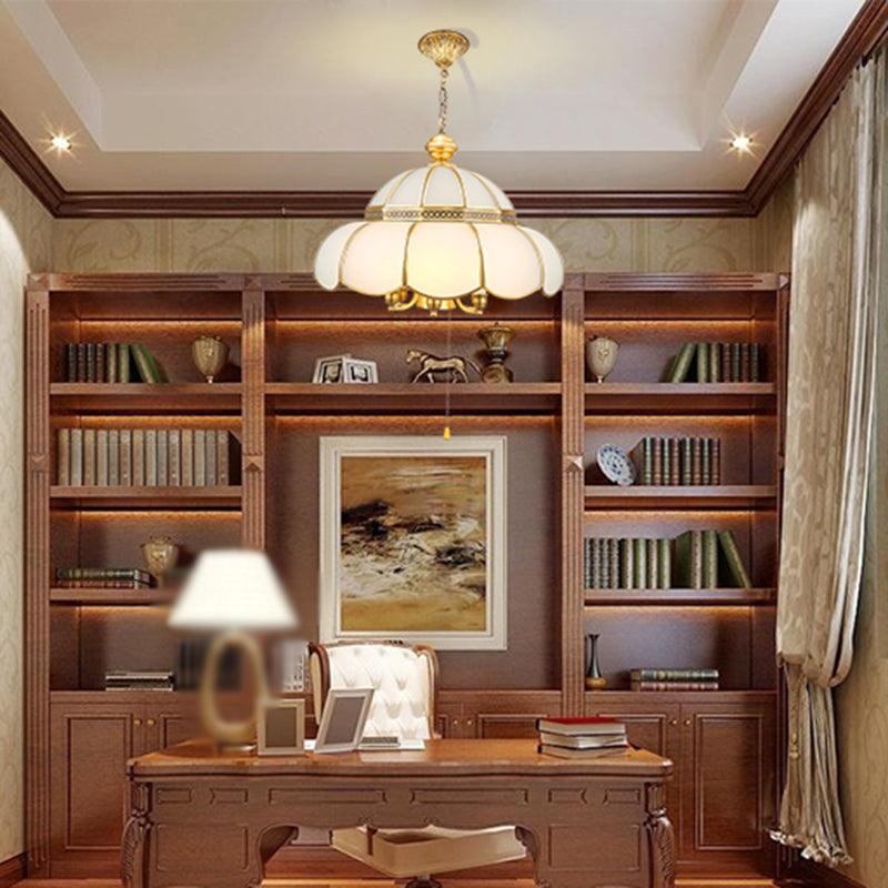 6 Bulbs Cream Glass Suspension Light Gold Scalloped Chandelier | Rebooters