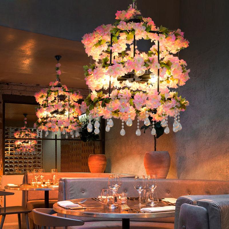 6 Bulbs Iron Chandelier Lighting Antique Black Floral Cage Light | Rebooters