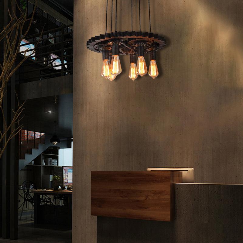 6 Heads Metallic Chandelier Lamp Vintage Silver Gray Gear Pendant Light | Rebooters
