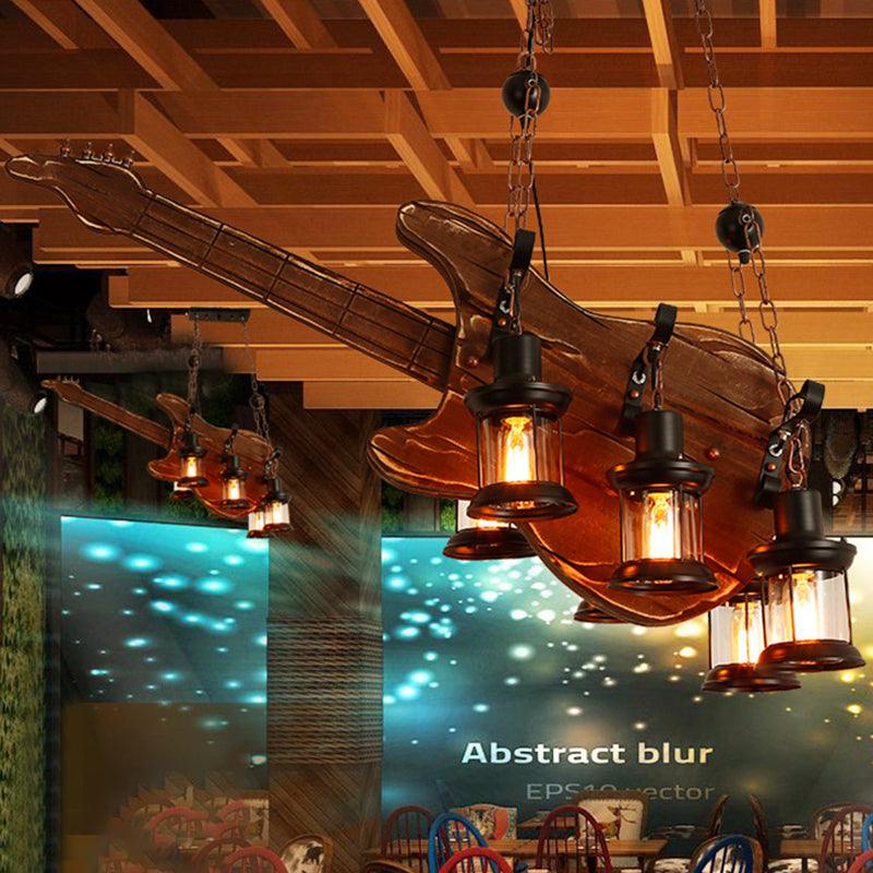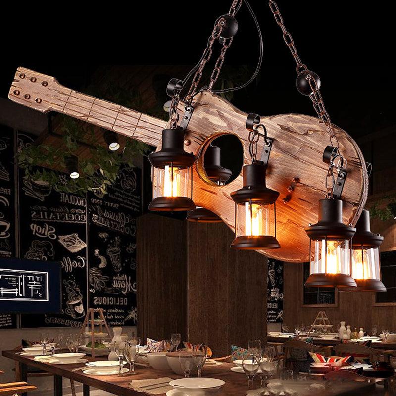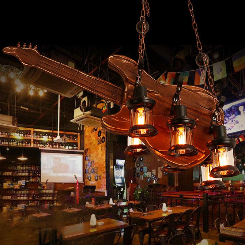 6-Light Clear Glass Hanging Chandelier Coastal Brown Lantern | Rebooters