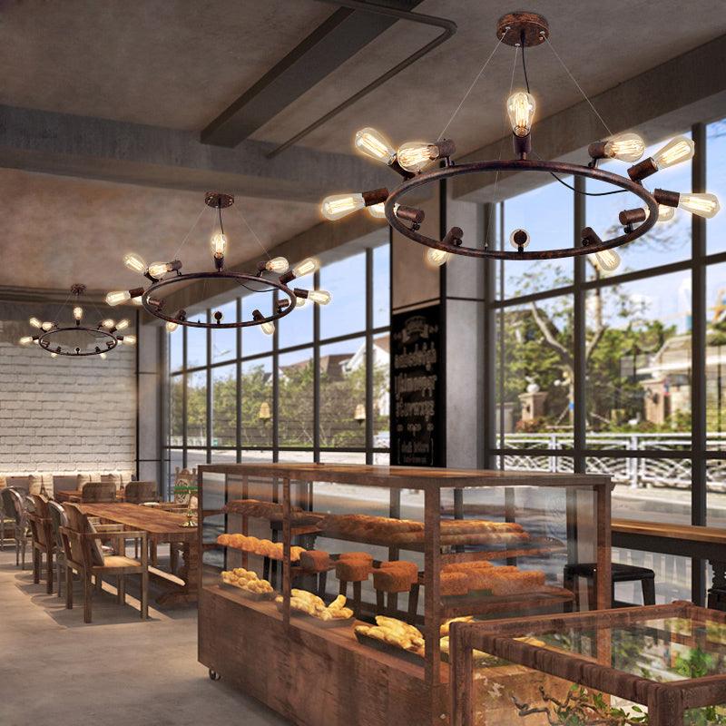 8/12 Lights Circular Hanging Light with Open Bulb Chandelier | Rebooters