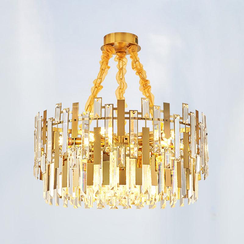9 Heads Drum Chandelier Contemporary Gold Blocks Clear Crystal Prisms Pendant Ceiling Light Fixture | Rebooters