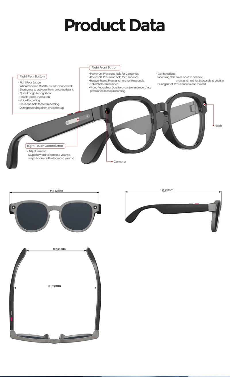 4KHD AI Smart Glasses Photochromic Lens Camera Glasses