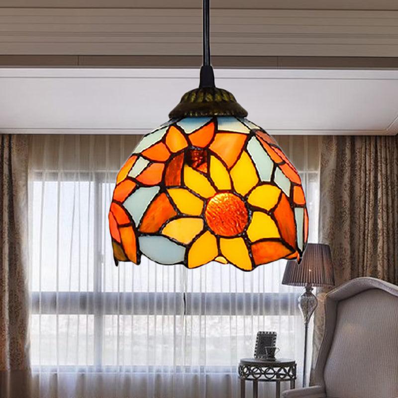 Antique Bronze Sunflower Pendant Lighting Tiffany Stained Glass | Rebooters
