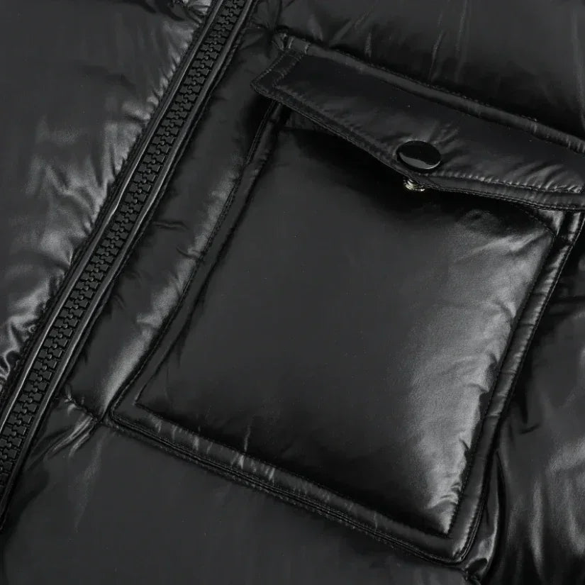 The medium-length (65 cm – 80 cm) silhouette features a double-breasted front with a smooth zipper closure, providing both practicality and modern elegance. Its turn-down collar and hooded design offer adaptable styling, perfect for shifting from city commutes to weekend escapes.