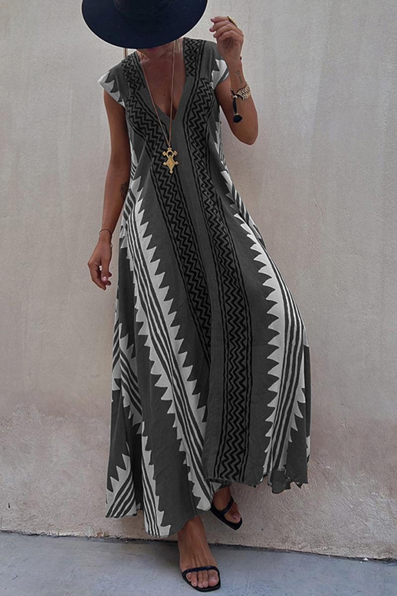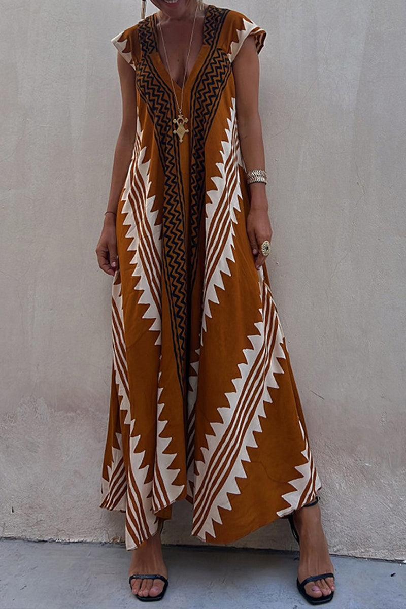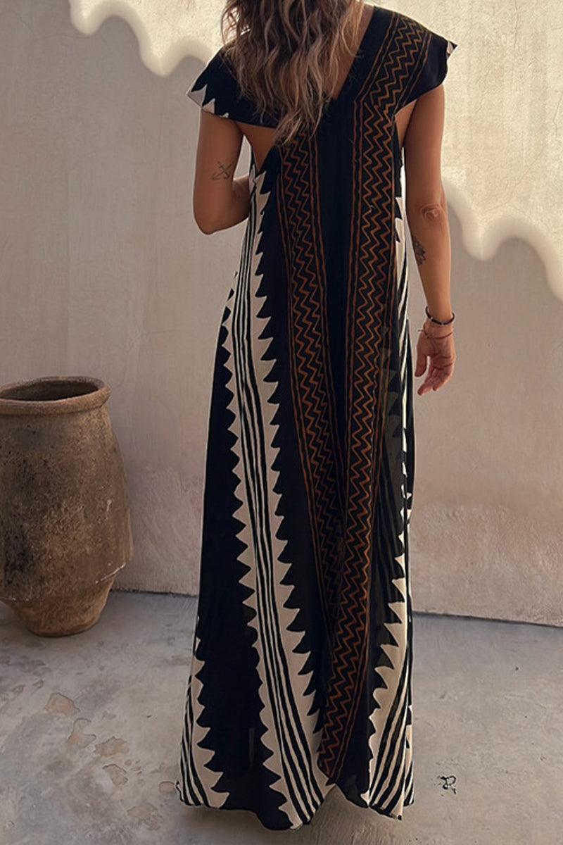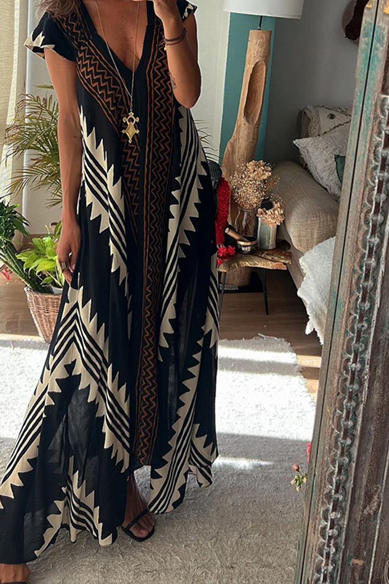 Introducing the stunning Aurora Maxi Dress, designed for effortless elegance and comfort. This flowing V-neck maxi dress features bold aurora patterns that capture attention, making it the perfect choice for beach days or boho-inspired nights out. Relaxed sleeves add a touch of sophistication while ensuring ease of movement.