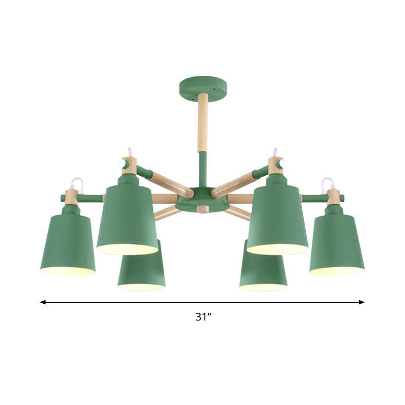 Baby Bedroom Bucket Chandelier Metal Wood 6 Lights Macaron | Rebooters