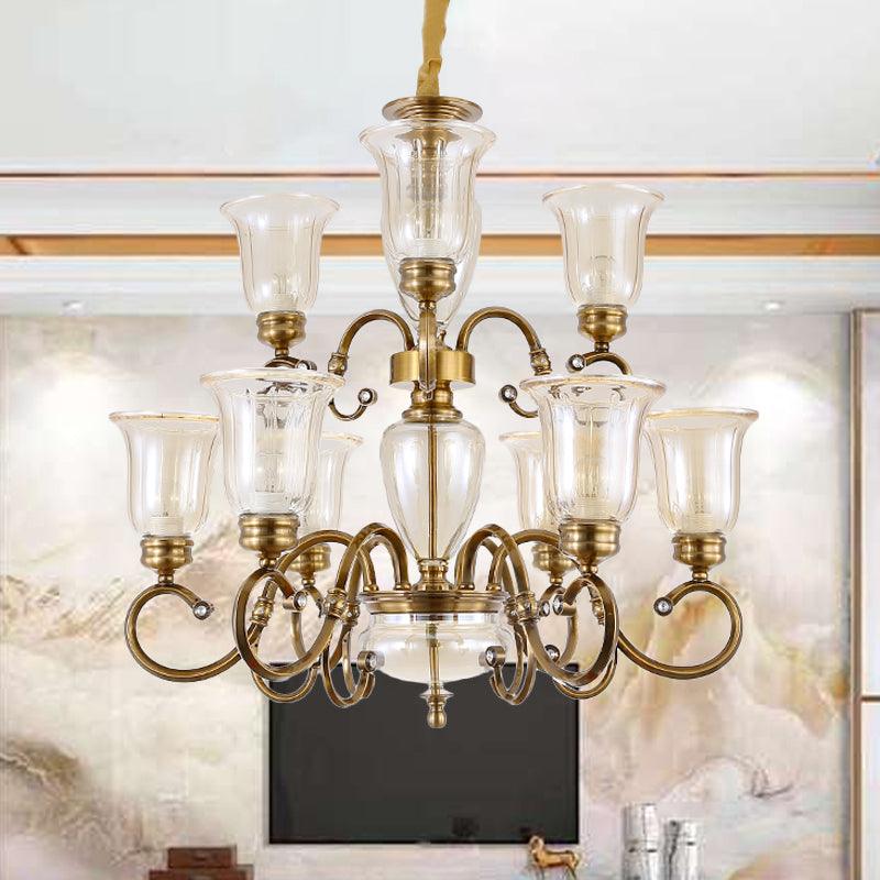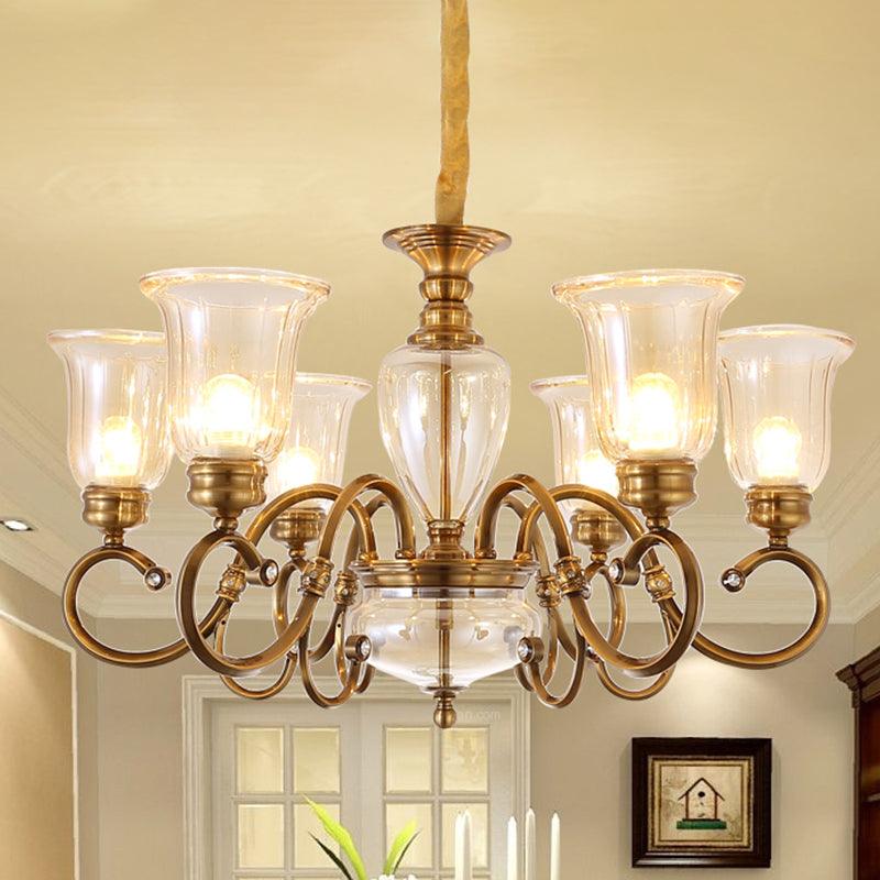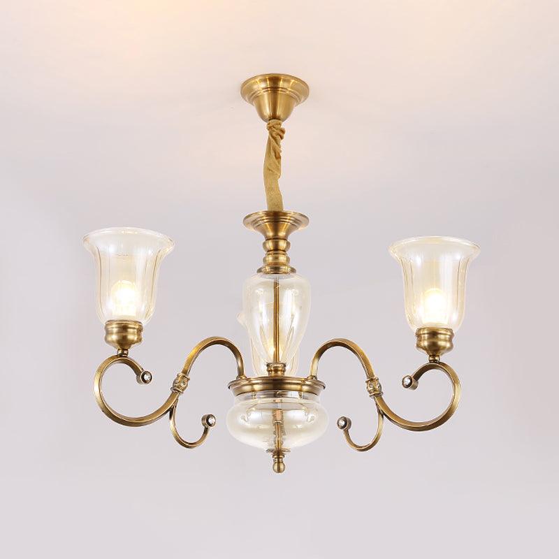Bell Living Room Chandelier Lamp Farmhouse Clear Glass 3 Lights | Rebooters