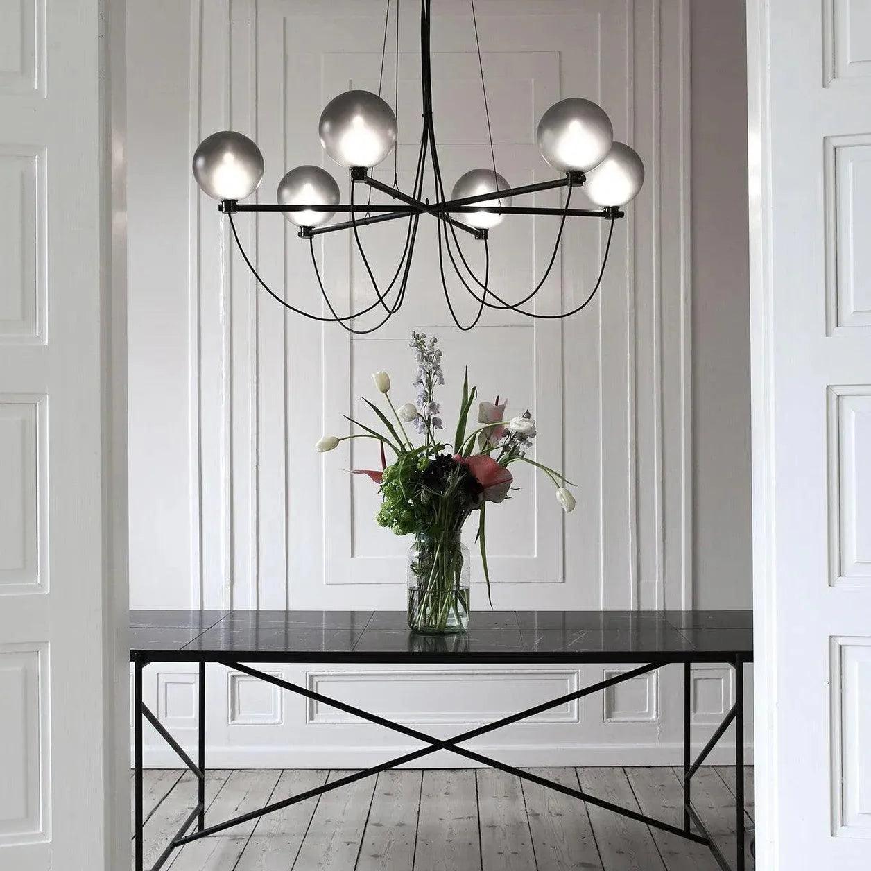Black Metal Frame Gray Glass Ball Chandelier for Elegant Spaces | Rebooters