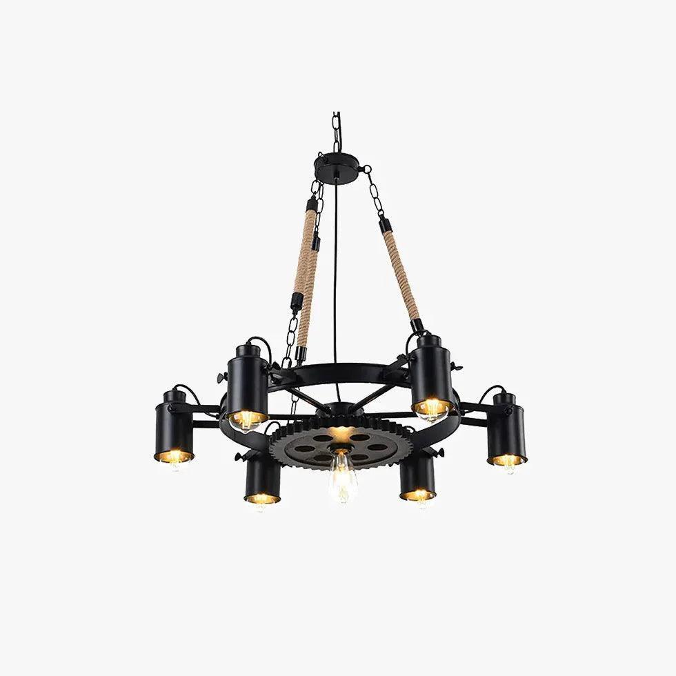 Black Wheel-Shaped Multi-Bulb Industrial Pendant Light Fixture | Rebooters