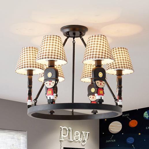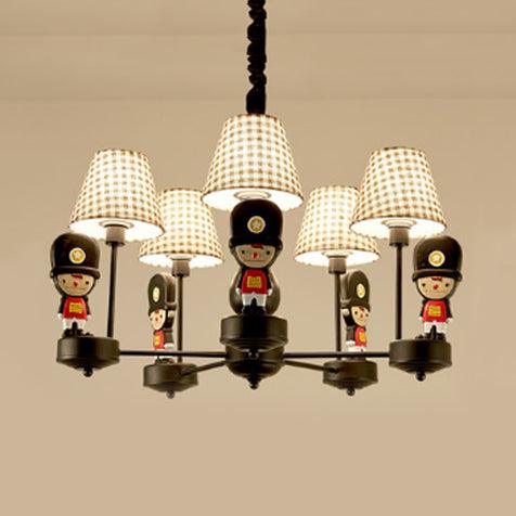 Brown Fabric Tapered Chandelier with Cartoon Man 6 Lights | Rebooters