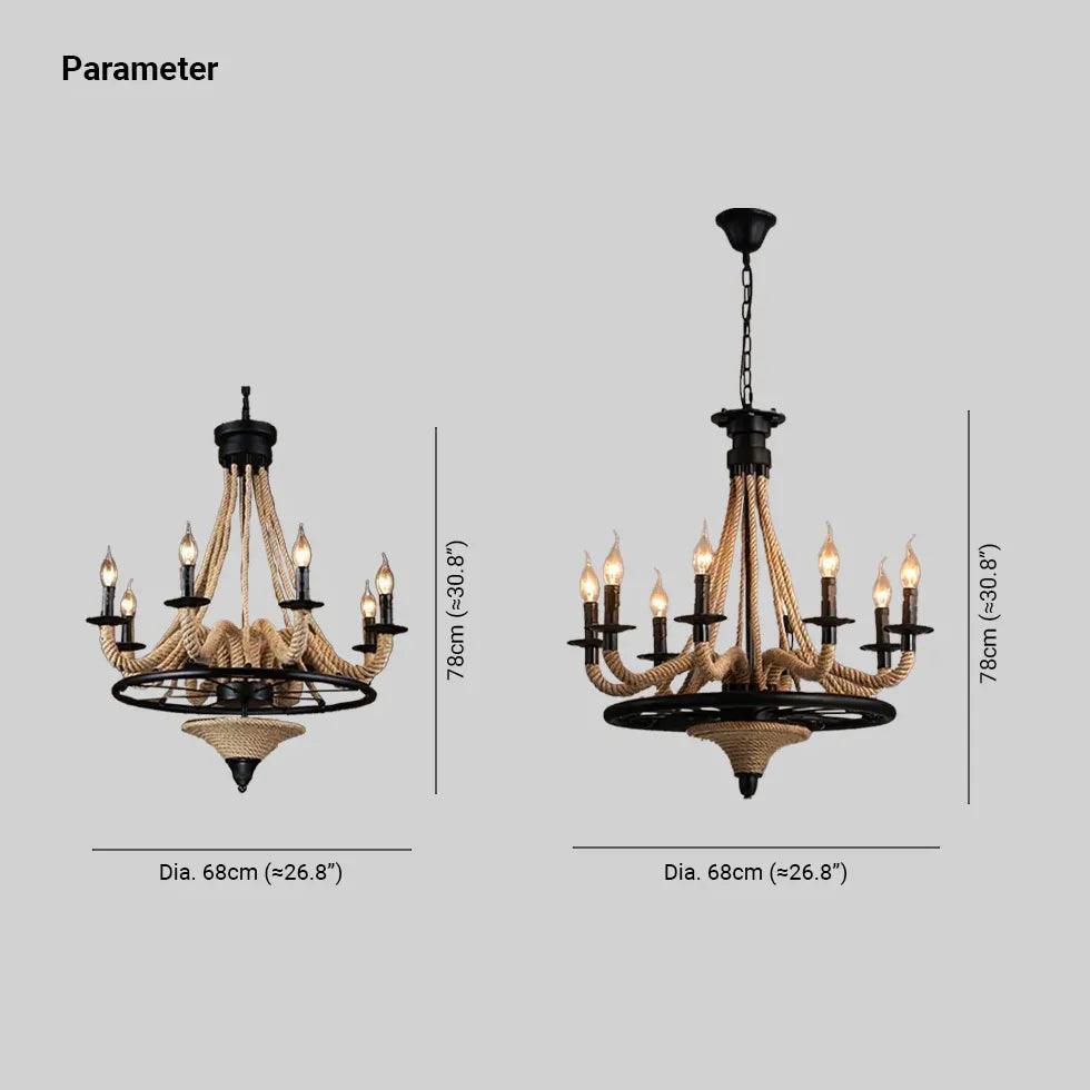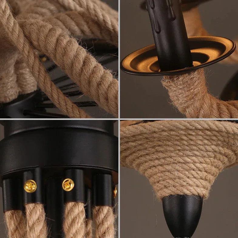 Candle Black Rope Vintage Chandelier for Elegant Spaces