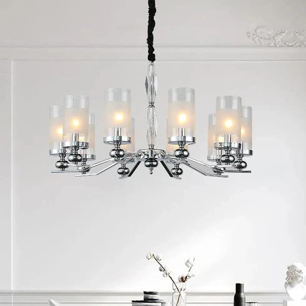 Cylindrical Shade Silver Modern Glass Chandelier Pendant Lamp | Rebooters