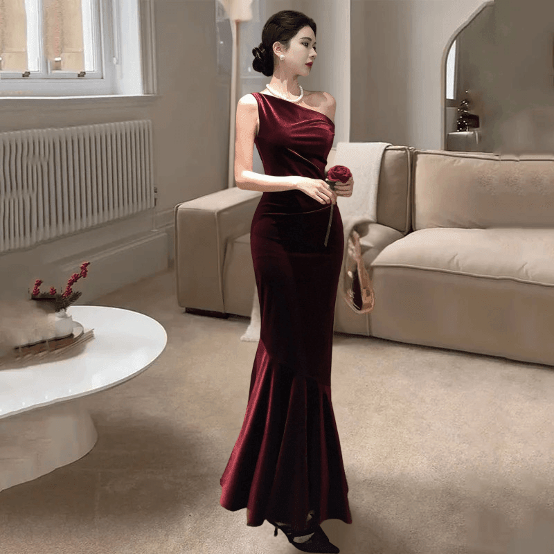 Laney Elegant Velvet Mermaid Evening Gown for Formal Wear