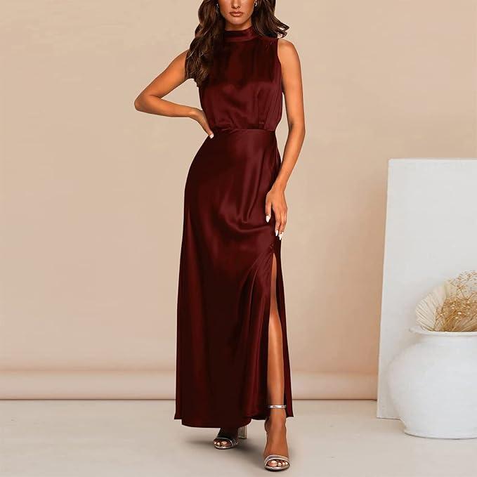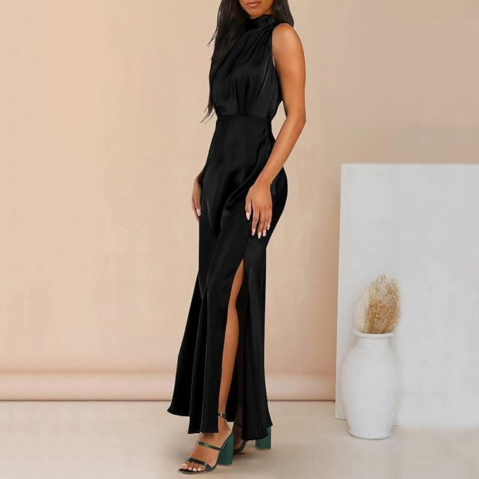 Elevate your evening wardrobe with the Ailani Women's Maxi Dress - Elegant Flowing Design. Crafted from luxurious premium silk, this stunning gown is perfect for formal events, weddings, and special occasions. Its sophisticated halter neckline and flattering fitted silhouette ensure you'll stand out, while the graceful side slit adds an element of movement and allure.