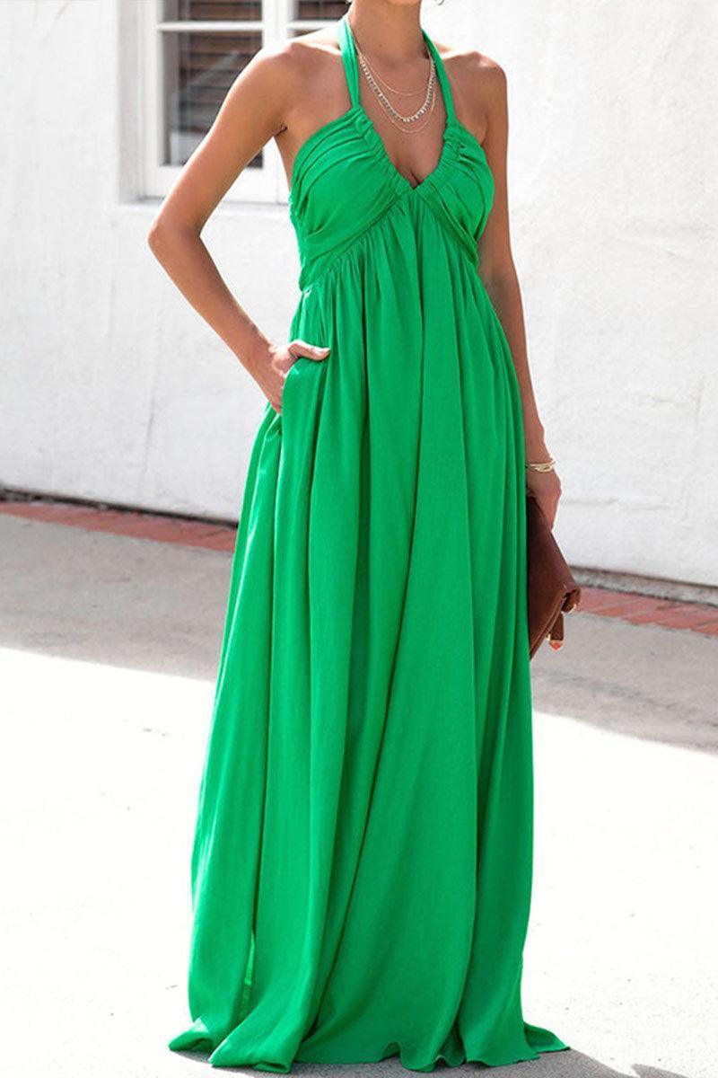 The Florence Ruched Maxi Dress with Graceful Cowl Neck and Flowing Skirt combines elegance and comfort, making it a perfect choice for any semi-formal or special occasion. Crafted from a high-quality blend of 95% polyester and 5% spandex, this dress offers a luxurious flow and a flattering fit that moves with you. Its sophisticated design features a sleeveless silhouette, a graceful cowl neckline, and a flowing skirt that creates a stunning silhouette from every angle.