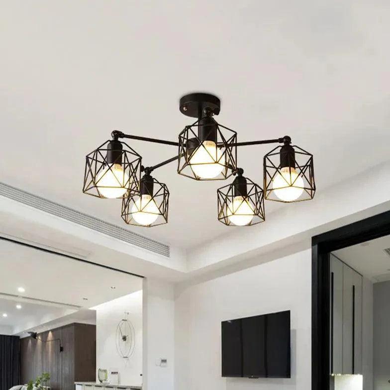 Geometric Metal Frame Black Industrial Pendant Light Fixture