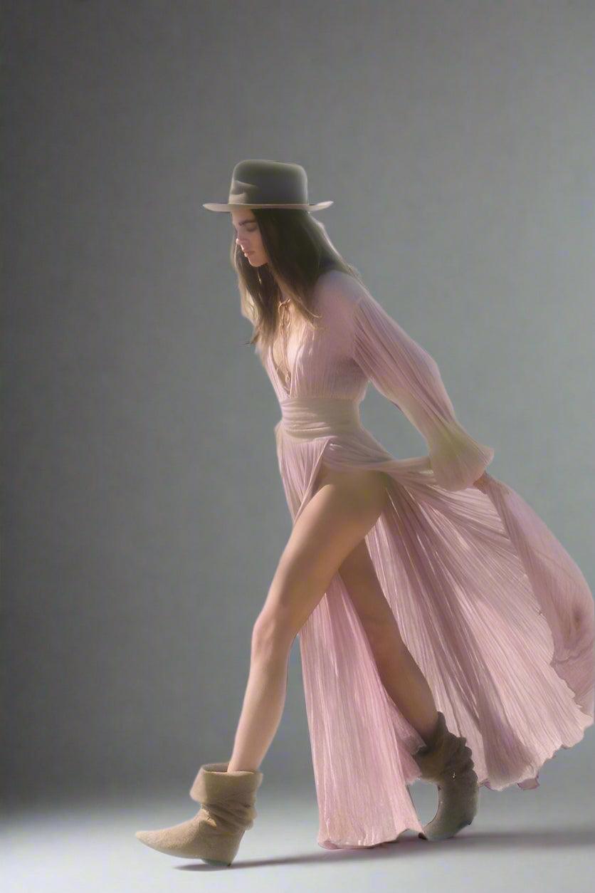 Harper Flowing Chiffon Maxi Dress with Side Slit and Elegant Draping