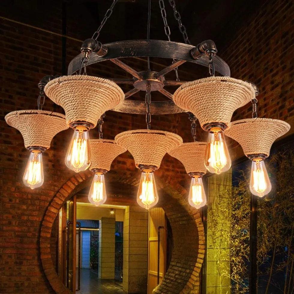 The Inverted Cone Rope Industrial Chandelier for Stylish Spaces is a captivating lighting solution that seamlessly combines rustic charm with modern elegance. This stunning chandelier is perfect for adding a touch of sophistication to bars, restaurants, cafes, and any stylish indoor setting. With its unique inverted cone design, it's not just a light fixture; it's a statement piece that enhances the ambiance of your space.
