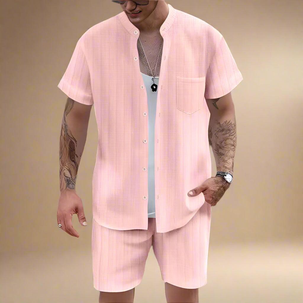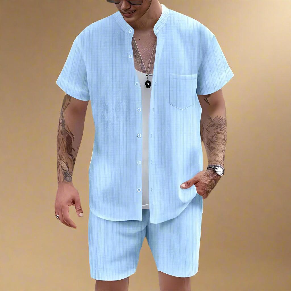 Men’s Casual Set Henley Shirt and Shorts for Summer Comfort