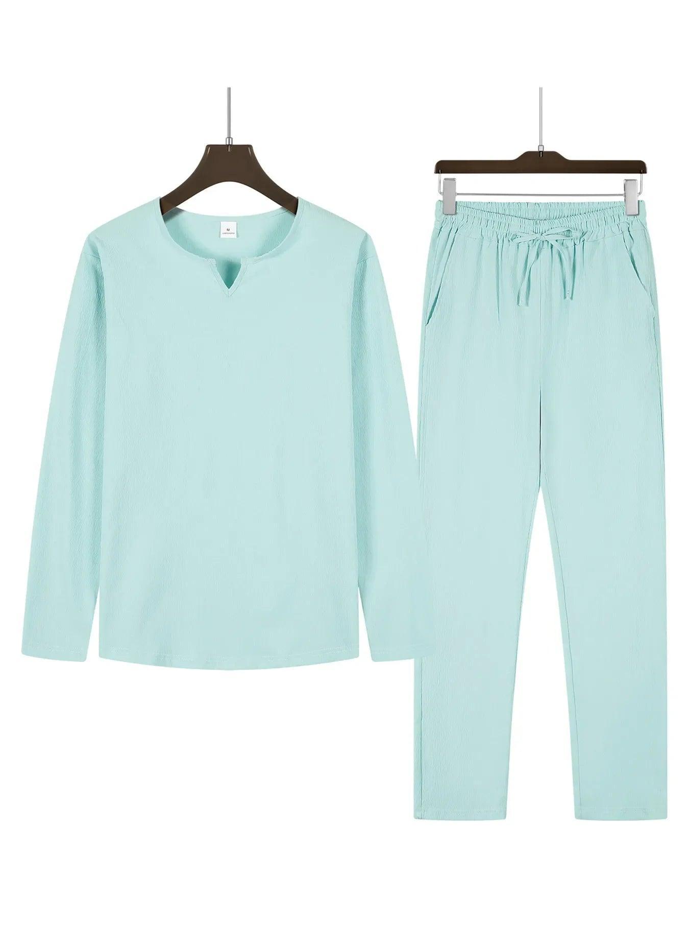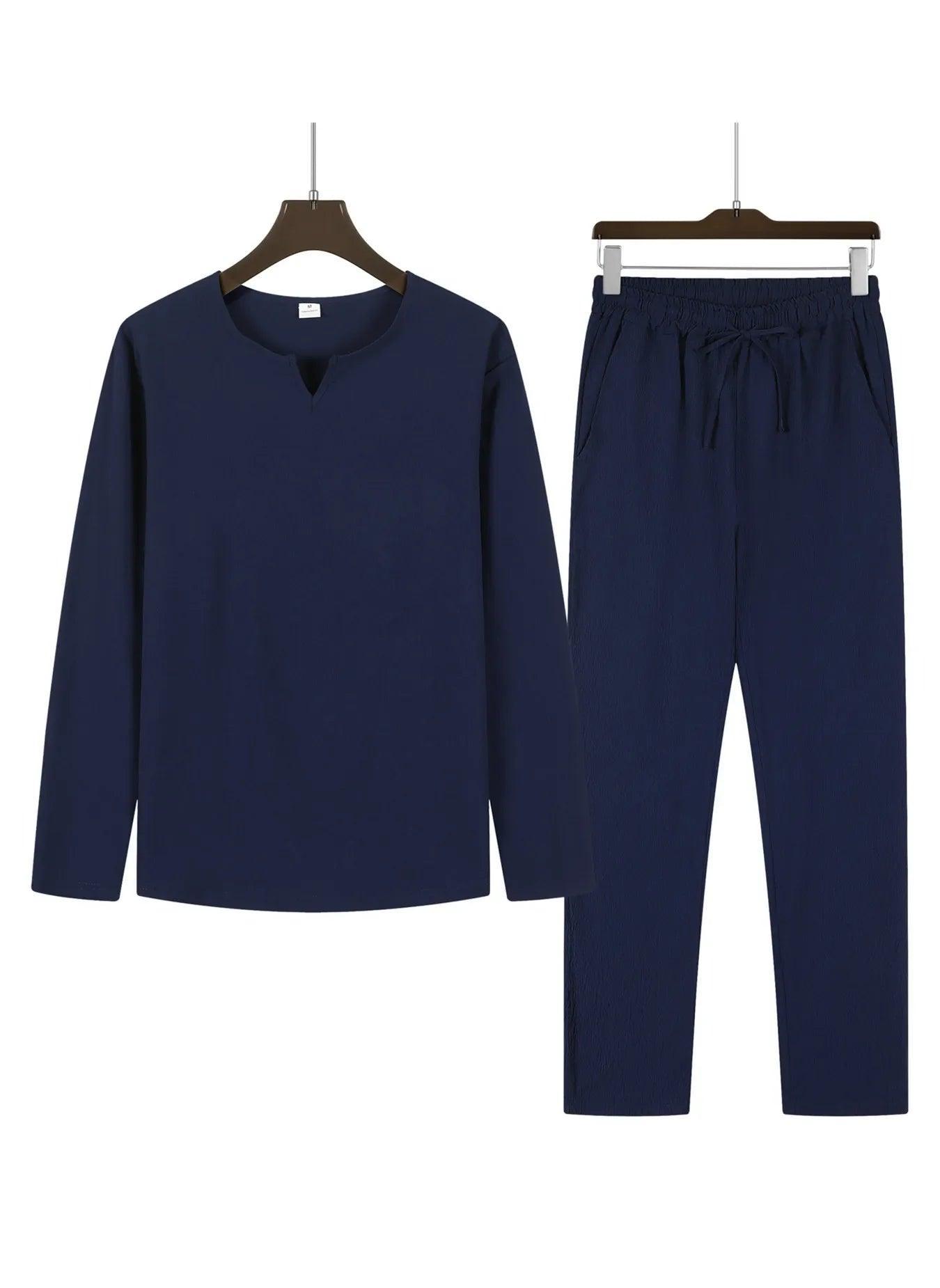 Men's Long Sleeve Top and Drawstring Pants Set for Comfort