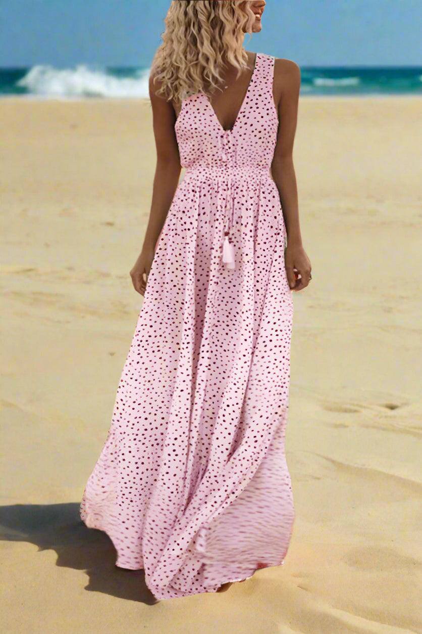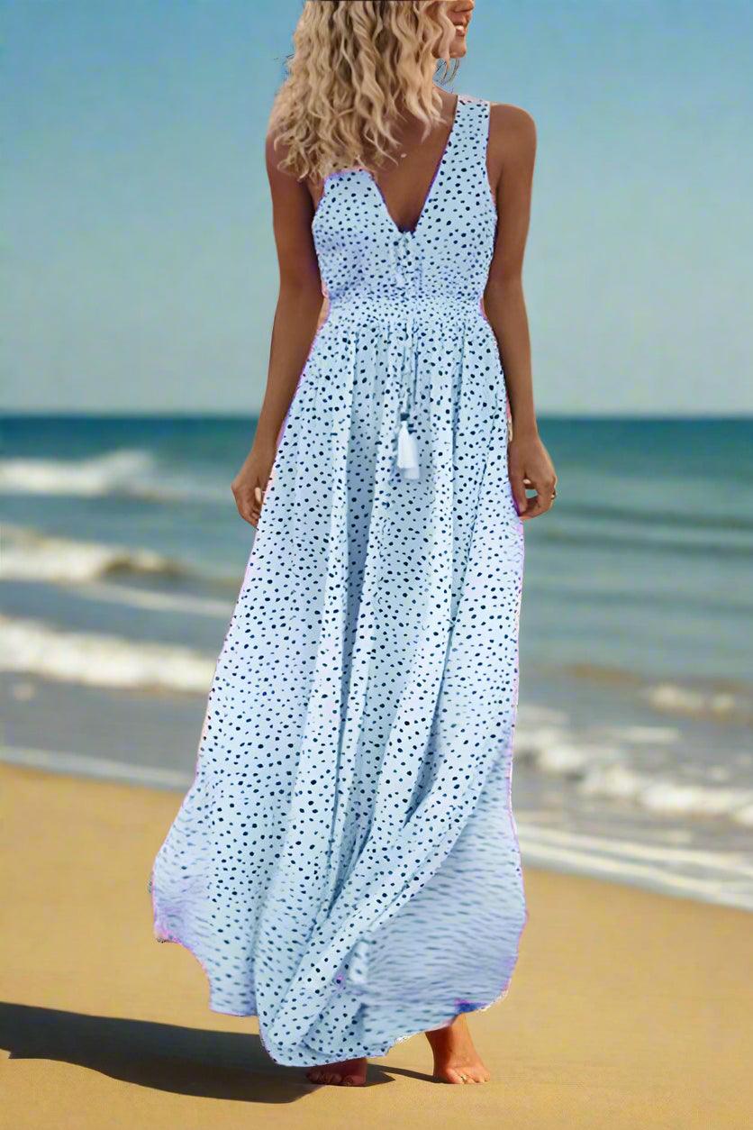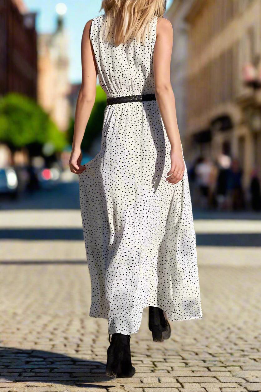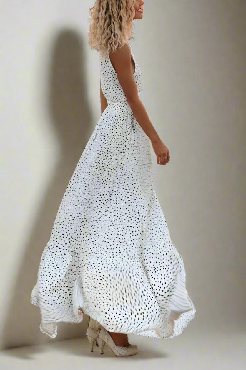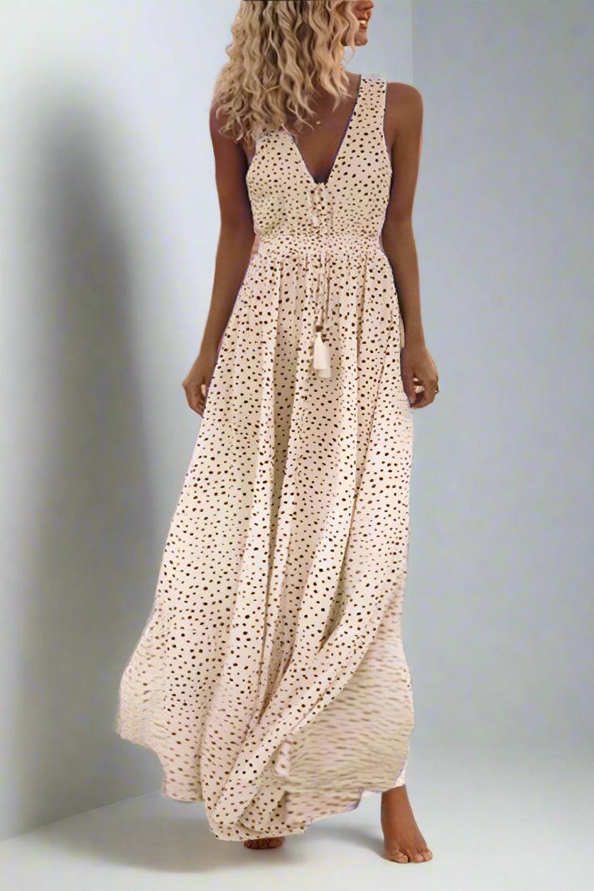 Mila Polka Dot V-Neck Maxi Dress with Flowing Silhouette